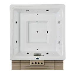 Квадратный гидромассажный СПА-бассейн Joy Spa JY 8018 в корпусе оснащен 69 форсунками, из них 59 - водные форсунки для гидромассажа, а через остальные 10 подаются мощные регулируемые струи воздуха. Данный бассейна рассчитан на одновременное нахождение в нем 5 человек.