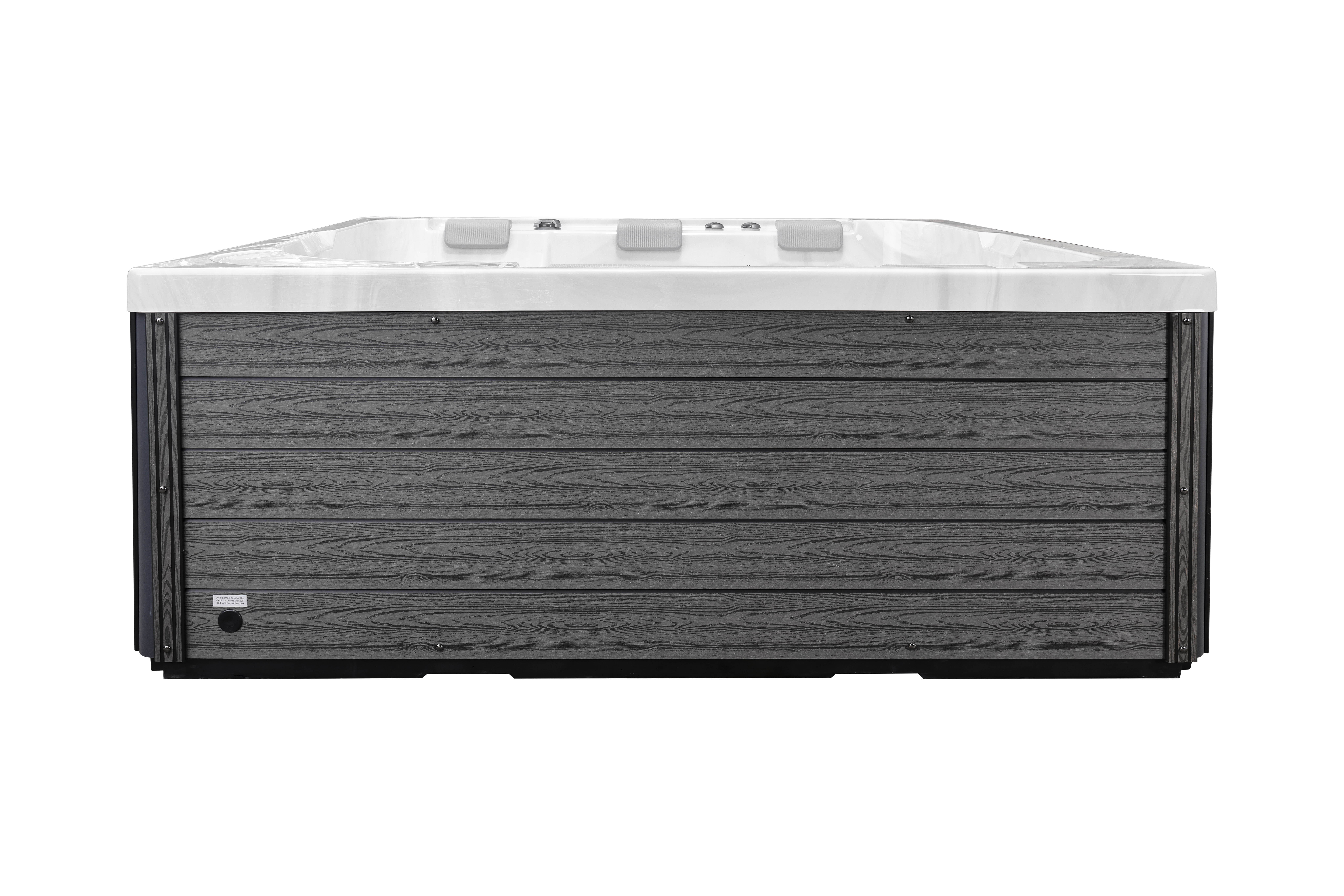 Прочная опорная рама из гальванизированной стали гарантирует устойчивость и долговечность конструкции. Элегантная обшивка из ДПК-панелей не только придает спа-бассейну современный вид, но и устойчива к влаге, перепадам температур и ультрафиолету.
