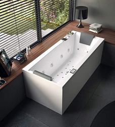 В комплект ванной входит пятикомпонентный смеситель, который обеспечивает даже лёгкий гидромассажный эффект. Также имеется подставка из нержавеющей стали.